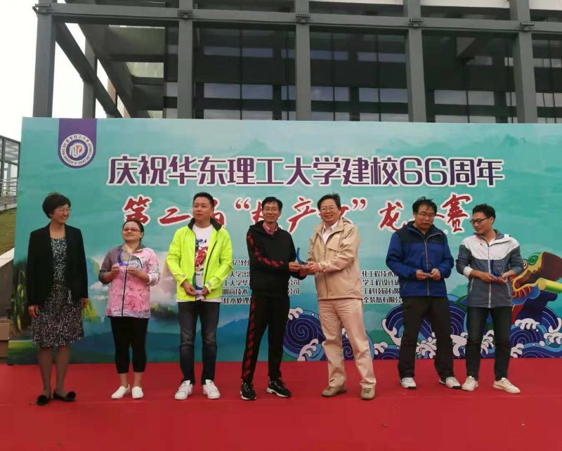 2018年10月13日為慶祝華東理工大學建校66周年,由上海華理資產經營有限公司主辦的第二屆“校產杯”龍舟賽在奉賢校區通海湖舉行,此次比賽共有8家校產企業參賽,200余人參加。