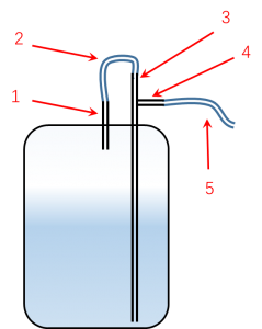 ? 發酵罐準備階段,按照下圖示意,連接軟管2和5,并用止水夾夾住5的末端。