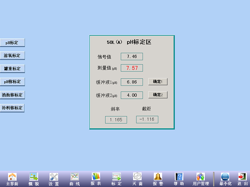 點擊左側pH標定進入pH標定界面。